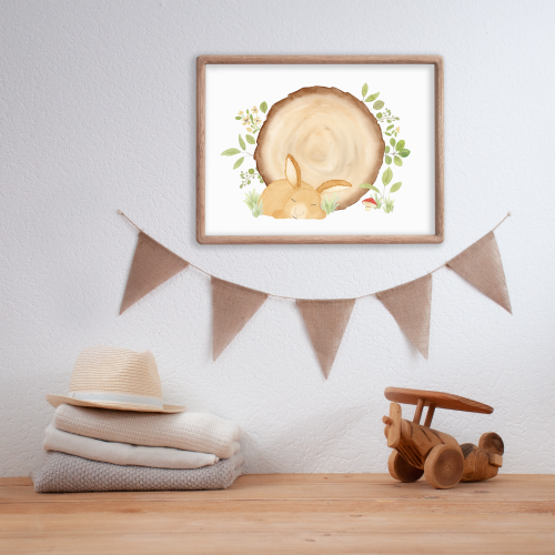 Poster Baumstammscheibe ´Schlafender Hase´